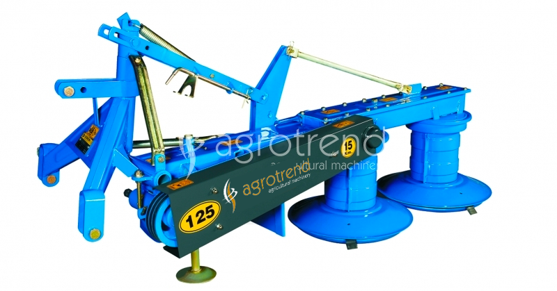 This is a mounted-type mower which is driven by tractor power take-off, and mows any kind of feeding plants, grasses, pastures and herbs by means of reversely rotating drums each having 3 blades and which leaves the grass as swathe. It is manufactured in two types as hydraulic and mechanical.